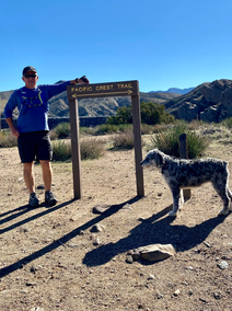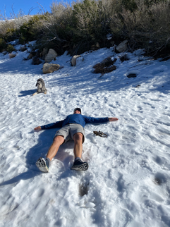 The park is surrounded by mountains; some of them snow-capped. We knew how much Myah has been missing snow, so we decided to drive up one of the mountain roads that led to a snow-covered trail. As soon as Myah hit a patch of snow, she joyously jumped and rolled in it with doggy glee. She frolicked and played in the snow like a child as we walked along the trail. We couldn't walk too far because my knee was still not stable, and I was afraid of slipping on the ice, but she truly enjoyed her time in the snow.
