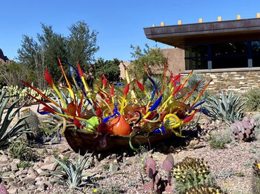 The next day Charles took us to visit the Desert Botanical Garden in Phoenix. This was a great way to see and learn about the variety of plants and cacti that live in the dry, desert environment. There are several trails within the park that center on different Sonoran desert themes. While we were there, they were setting up for a "Chihuly in the Desert" exhibit, so we were able to see a few pieces from this well-known artist as we walked along the paths. We spent a couple of hours touring this beautiful park.
