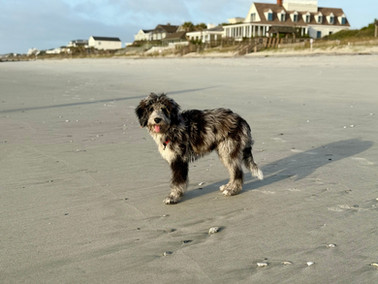 Of course, we couldn’t leave without a little beach time for Sierra. We found a quiet stretch of sand where she could run, dig, and feel the ocean breeze in her fur. Watching her race along the shoreline was pure joy — one of those simple, happy moments that make travel so special.